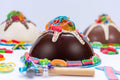 This richly painted 14 inch round platter includes assorted chocolates, cookies and pretzels with Chanukah themed colors and decorations. Included are 5 chocolate dipped pretzels, 5 chocolate covered grahams, 5 chocolate covered Oreos, 5 chocolate dipped biscotti, 2 pieces nut bark and 30 assorted chocolates and truffles, topped by a chocolate plaque with Happy Chanukah greeting. 55 pieces total. You may depend on our expert staff to provide a wide selection of our finest and freshest confections.